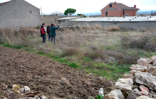 ![]() El tercer fin de semana del mes de noviembre amenazaba lluvia y frío (y se cumplió) lo que no fue impedimento para llevar a cabo una experiencia artística en la naturaleza. Un grupo de profesores y alumnos del CES Felipe II de Aranjuez se trasladaron a Valdesimonte para desarrollar las obras que llevaban abocetadas en sus cuadernos. De la experiencia han salido siete intervenciones que servirán de base para futuras acciones educativas y quien sabe si para que alguno de ellos inicie su obra artística utilizando este lenguaje nuevo para ellos. Acercar el paisaje y por ende la naturaleza al alumno, poner de relieve la calidad y la cualidad de lo que tiene delante de sus ojos, en definitiva, enfrentarle a ver, a observar, es uno de los objetivos fundamentales de la docencia universitaria en el área de conocimiento de la escultura; esta metodología resulta muy eficaz para la consecución de los objetivos propuestos en el aula siempre y cuando se den las condiciones de motivación, compromiso y trabajo necesarios; sin embargo, conseguir esto de manera continuada en el tiempo solo con el trabajo en el aula es muy complicado porque precisamente la creatividad necesita estímulos, experiencias y vivencias que no siempre se dan en el aula. Por ésta razón proponer ejercicios, visitas, viajes fuera del aula universitaria es tan importante para conseguir estudiantes despiertos, activos y comprometidos con lo que pasa a su alrededor. El grado en Bellas Artes fomenta la experimentación y este tipo de intervenciones serán cada vez más frecuentes, por lo que, la que aquí se presenta servirá de ayuda a otros grupos. Aplicar los conocimientos a una práctica real, en un paisaje concreto, utilizando para ello el compromiso de los distintos docentes y sus diferentes perspectivas genera autentico conocimiento específico, como hemos podido escuchar en las conversaciones de los participantes: “Debería ser obligatorio hacer este tipo de experiencias, no se entiende el Land Art hasta que no lo pones en práctica”. 1-La continuación de la huerta vecina, sembrar para recoger: Alejandro, David, Diego y Claudia han trabajado como labradores, han hecho surcos donde sembrar sus cajas de colores para crear un huerto de arte que se mira en el huerto vecino. Las cajas vacías que disponen ordenadamente para dejar que el tiempo y la naturaleza las ocupen. Ellos han dejado su huella y como dijo uno de ellos “para recoger hay que sembrar” refiriéndose sin duda a sus acciones futuras. ![]() 2-Interpretación de una construcción en negativo Paloma, Cynthia y Alicia interpretan la construcción del lugar donde han vivido estos días. A modo de maqueta han organizado el espacio en el interior de la tierra con distintos materiales encontrados en el entorno, una casa de muñecas que describen el espacio de la nave, las vigas, la estufa, el taller de escultura…el paisaje en negativo es una forma de interpretar escultóricamente y ofrece muchas posibilidades al artista. Es un buen ejemplo de una de las premisas propuestas: habitar el paisaje. Ver los elementos domésticos, tan humanos, en la tierra produce un escalofrío y lo vincula con ciertas costumbres primitivas. ![]() 3-La tela de araña. El nido Hugo, Celia y Félix, habitan el paisaje de un modo animal, excavan un gran hueco que han empedrado cuidadosamente como podría haber hecho una gran ave para hacer su nido, el empedrado juega visualmente con la valla cercana que hace de frontera con las propiedades vecinas, las ramas pintadas de blanco dibujan una telas de araña que ocupa los límites del hueco y se expande por el terreno. El contraste entre el hueco oscuro y empedrado y las ramas blancas tiene un gran impacto visual. Podría pasar por algo hecho por la naturaleza. No parece humano. ![]() 4- Hablando de estratos: Esta obra realizada por Jade, Marta y Adriá se fundamenta en una construcción geométrica compuesta de una rampa excavada que termina en un muro donde interpretan un curioso sistema de estratos compuesto con materiales de la naturaleza propios de esta estación y de este lugar. Busca el color de la tierra, secciona, interpreta, compone tratando la tierra como un cuerpo diseccionado. La entrada suave de la rampa nos conduce directamente al plano vertical que puede interpretarse como una pintura matérica. ![]() 5-Sombra de árbol inexistente: Anahí, Víctor, Federico y Luís pensaron que no había árboles y ese fue el punto de partida. Estudiaron la sombra de un árbol cercano y la interpretaron en este terreno desarbolado. La sombra se convierte en presencia para señalar el hecho. El hueco pintado en rojo para resaltar la silueta se integra en el suelo que recorre el terreno uniendo el resto de las obras realizadas ![]() 6- Orión Alfonso y Ángel utilizaron esta tierra para mirar el cielo: la constelación de Orión interpretada con luces y que solo se puede ver en la oscuridad. Dibujaron a escala los puntos de la constelación y colocaron las luces en el lugar adecuado. Después se produjo el momento mágico y tras un día cubierto de nubes se abrió el cielo y Orión apareció para mirarse en el espejo. ![]() 7-Conversaciones en la tierra Situarse dentro de la tierra para iniciar una conversación desde sus entrañas es establecer un lugar de reflexión acerca del paisaje. Es crear un espacio íntimo en el que dos personas enfrentadas a una misma situación fueran capaces de entablar un diálogo con la misma tierra que les acoge, les protege y a la vez les mantiene unidos en ese asiento improbable. El sentido de esta obra es percibir que somos tierra, sentir que somos parte integradora paisaje, es completar un paisaje del que forma parte nuestra existencia. ![]() Con esta experiencia los artistas han querido acercarse al paisaje desde lo cultural, lo histórico y lo simbólico. Y en este marco de formación coordinado y transdisciplinar, el alumnado se aproxima al proceso de convergencia europea que la Universidad p